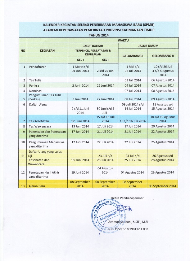 AKPER Pemprov Kaltim membuka penerimaan mahasiswa baru Tahun Ajaran 2014/2015 untuk Program Diploma III Keperawatan melalui Jalur Umum dan Jalur Daerah Terpencil, Perbatasan, serta Kepulauan.